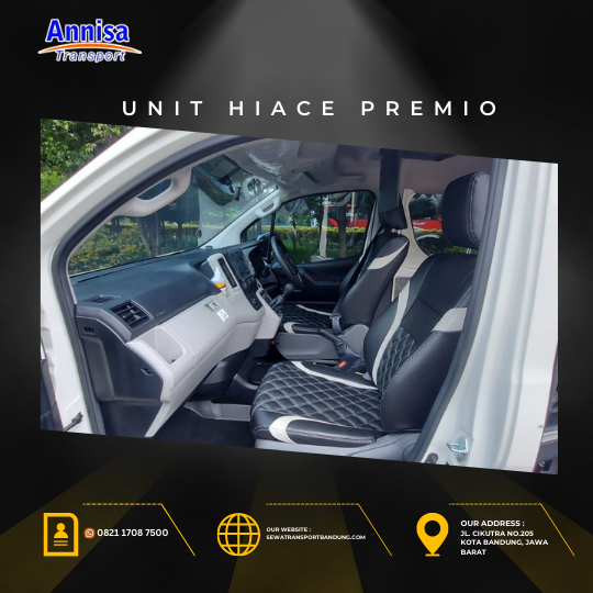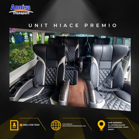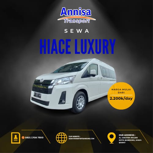 Annisa Transport Menyediakan Layanan Sewa Hiace Luxury di Bandung, layanan kami memprioritaskan Kepuasan Pelanggan dengan Memastikan kendaraan Terbaik tentunya dengan sopir yang berpengalaman ditambah dengan Pelayanan staff kami 24 Jam.