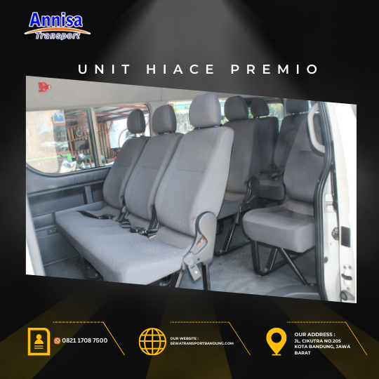 Annisa Transport Menyediakan Layanan Sewa Hiace di Soreang, layanan kami memprioritaskan Kepuasan Pelanggan dengan Memastikan kendaraan Terbaik tentunya dengan sopir yang berpengalaman ditambah dengan Pelayanan staff kami 24 Jam.
